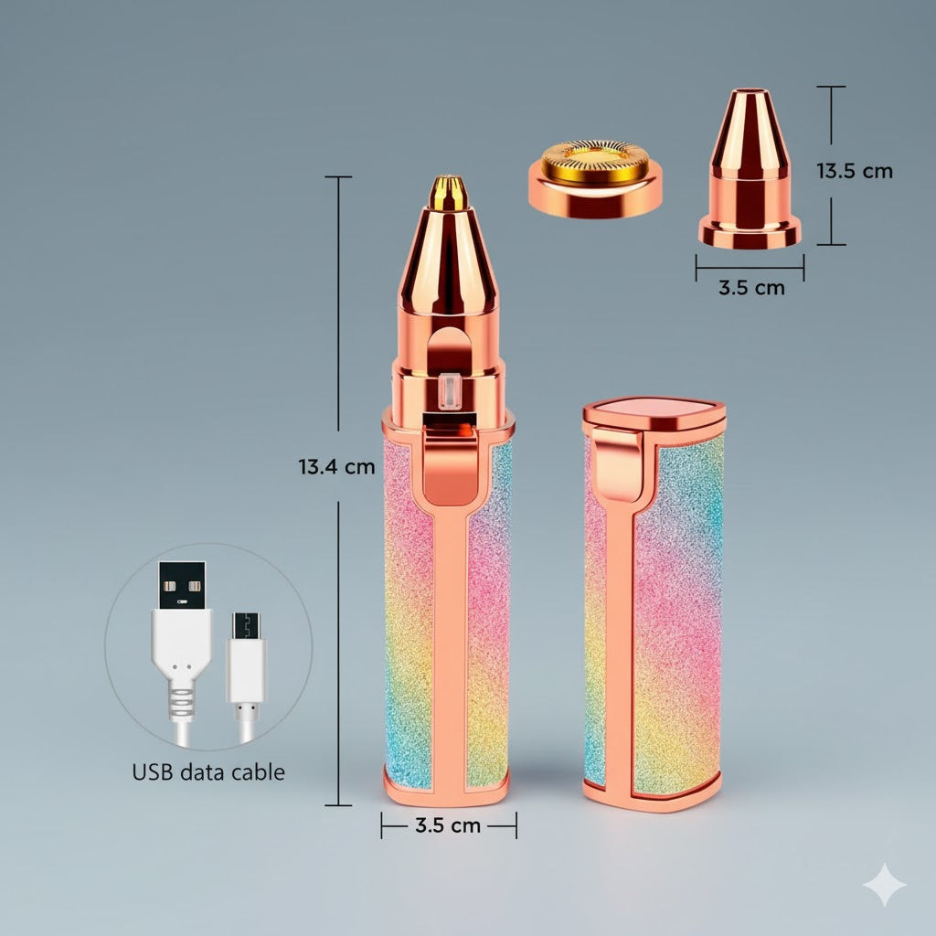 Es la herramienta definitiva para eliminar el vello **facial, corporal y dar forma a tus cejas** con precisión de salón. ¡Y lo mejor es que es **recargable** y puedes usarlo en cualquier momento y lugar!